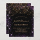 キンセエレガントーニェラ、15th誕生日パーティーのために。黒スタイリッシュい背景。紫飾の金ゴールドフェイクグリッターの塵と黄金の光の弦と名前、年齢、およびパーティー詳細をカスタマイズして追加する。名前は手書文字のスタイルスクリプト