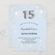 女のモダン子のスタイリッシュクインチェニェラ、15th誕生日パーティーのための魅力的で魅力的な招待。赤ん坊の青い背景、銀飾色のグリッターの塵と。名前とパーティー・詳細のパーソナライズおよび追加15番はバ書ロンスタイルフォント、スクリプト。