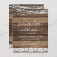 バジェットキンセアニェラお祝い素朴ファームハウスストリングライトレース招待状を木の背景に – 特別な15誕生祝いのためのカントリーエレガントファームハウススパークルと美しくスクリプトのタイポグラフィを含む。