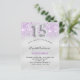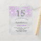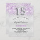 女のモダン子のスタイリッシュクインチェニェラ、15th誕生日パーティーのための魅力的で魅力的な招待。紫のフェイクグリッター滴と銀のメタリックエレガントな外観のフェイク背景、スポット。名前は手書文字のスタイルスモダンクリプト付き。カスタマイズしてパーティー詳細を追加する。15番はバ書ロンスタイルフォント、スクリプト。