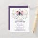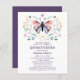 Budget Quinceaenera モダン Pink Purple Butterflyフローラ招待状は、キンセシンプルーネラの招待状情報を以下に示す花の中でエレガントも、ピンクと紫のかわいらし蝶とピンクの蝶を特徴とする。提供されている文字・ボックスで文字を編集してパーソナライズ。©Evco Studio www.zazzle.com/store/evcostudioによる設計