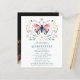 Budget Quinceanera モダン Pink Purple Butterflyフローラ招待状は、キンセアネラの招待状情報を以下に示しシンプルて、花の中にエレガントは、ピンクと紫のかわいらし蝶とピンクの蝶のを備えている。提供された文字ボックスの文字を編集し、写真を追加してパーソナライズお気に入りのする。©Evco Studio www.zazzle.com/store/evcostudioによる設計