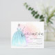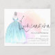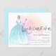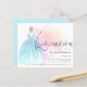 グラムドレスブルーキンセアニェラ。予算フレンドリーは4.5インチx 5.6インチの代替品。セミグロス110 lbカード素材またはサテン仕上げ80 lbシンナー紙素材。封筒はオプションで追加できる。美しコンテンポラリーい青いボールガウンの女の子のバックビューのイラストレーションを持つキンセアニェラデザイン。メインのヘッダは設定されたスクリプトに含まれており、詳細に対して文字の残りの部分を簡単にパーソナライズする。裏には青いコーディネートが付いている。