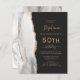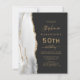 この50歳離れの誕生日の招待の手の端エレガントは灰色と白の水の色のアグレ縁どート金ゴールドのグリッター。カスタマイズ可能な文字は、金ゴールド色の手書き入力、コピープレートおよび斜体のフォントを石板の黒い背景に組み合わせる。裏面は整合ゲートデザインを備える。