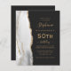 この50歳離れの誕生日の招待の手の端エレガントは灰色と白の水の色のアグレ縁どート金ゴールドのグリッター。カスタマイズ可能な文字は、金ゴールド色の手書き入力、コピープレートおよび斜体のフォントを石板の黒い背景に組み合わせる。カードの背面にRSVPの指示を追加し、QRコードゲストはオンラインで応答するためにスキャンすることができる。