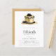 バジェットケーキ金ゴールドブラック50th誕生日招待状。小さクラシックい4.5 x 5.6インチの予算の価格セミグロスカード(ハガキの厚みに似た)に黒と金ゴールドのスタイルを招待状し、50歳の誕生日パーティーにゲストをする。上にエレガントはケーキと花模様。コーディネート金ゴールドが背面にある。お客様の要件に合わせて文字を容易にカスタマイズ