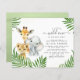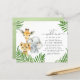 男女中立の赤ちゃんシャワーの招待状。このデザインは、水色の象、キリン、キータイのカブを緑のヤシので葉す。シャワー詳細はスクリプトタイポグラフィの右モダンに表示される。「読少し野生の人が道を進んでる!」。右上フェイク隅と右下の角にも金ゴールド離れ紙吹雪が存在する。これらのカードは緑の水彩洗剤に逆だ。Zazzleの予算の選択の一部として、これらの招待状は封筒と一緒にも、標準サイズの封筒に完全に適合しない。最も近いサイズはA6だが、約50センチのギャップがある。これもしは気にしない、あなたはこのような広く利用可能なA6エンベロープを使用することができる。それ以外の場合は、このデザインを標準の5x7形式(エンベロープ付き)に転送するには来、デザイン転送ツールを使用する。