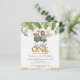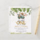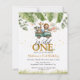 バジェット・サファリ写真1stワイルド・ワン・ファースト・誕生日でワイルド・アドベンチャーに参加!可愛いサファリの動物と青々としたジャングルの葉を特徴とし、小さな探検家の特別な日のためにパーソナライズ。