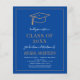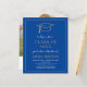2023予算この青と金ゴールドの卒業王室のパーティーの招待状をメッセージと詳細と共に白い背景でパーソナライズする。今回のスタイリッシュ招待には、高校卒業生向けのキュートでスクリプエレガントトタイポグラフィの写真が含まれている。