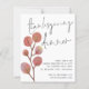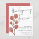 予算シンプルの葉招待状感謝祭。4.5インチx 5.6インチの低価格の代替品。デフォルトのオプションであるセミグロス110 lbカードストック(招待状に推奨)またはサテン仕上げ80 lbシンナー紙ストック(エンクロージャに最適)で利用可能。封筒はオプションで、カードサイズより少し大きい。秋アートの葉コーラルピンク色の水の色の離れタイポグラフィは、感謝祭ディナーのトレンディー手書きスタイルセットのと一緒に。イベントの詳細で文字の残りの部分を簡単にパーソナライズ。コーディネートの色が背中に付いている。