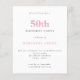 バジェットシンプル文字赤面ピンク50番目の誕生日招待状。4.5 x 5.6インチより小さい価格のための値は、招待状に推奨されるセミグロスオプションにデフォルト設定され、ポストカードと同様の厚さである。サテンのオプションは非常に薄い紙。フォントの色や種類は編集メニューで変更できる。また、文字と背景色を任意の側で変もし更できる。