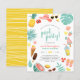 バジェットスイカ、パイナップル&トロピカルプールパーティの招待状。祝スタイルでおもしろい招待状。このデザインは縁ど夏の要素、スクリプトレタリングの「プールパーティー」モダン、トレンディータイポグラフィのパーティー情報を備えている。パイナップル縁ど、カメラ、サンハット、シェード、トロピカル葉、花、アイスリー、レモネード、ビーチサンダル、ビーチボール、レモン、ドーナツ、スイカ、アイスクリームなどからなる。これらのカードは、明るい黄色の背景に対して白い線のパターンに逆になっている。「クリックこのテンプレートをパーソナライズ」して用語を変更する。フォントもし、サイズ、色、または配置を変更し、下へスクロールして「さらにクリックする」にスクロールしカスタマイズて、デザインツールを使用する!私たちの店を訪問してもっとデザイン!