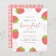 バジェット甘いベリー最初の女の子1st誕生日の写真招待状。赤い台本の中の「ベリーが先に」あなたの誕生日詳細を囲む甘いイチゴよくはしゃぐ。赤いギンガムの背景に大切な小さな女の子の魅力的写真が映し出される。そしもして、より一致する製品が感じ必要だ。