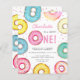 お前は最初の誕生日パーティーを計画してるのか?この可愛い予算の誕生日の招待はパステルシェードの水の色のドーナツと一緒である。簡単にカスタマイズ可能オリジナル水彩©ミケーレ・デイヴィス。