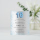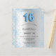 女のモダン子のスタイリッシュ甘い16、16th誕生日パーティーのための魅力的で魅力的な招待。銀フェイク色の背景飾は、青い色のグリッターの塵。名前とパーティー・詳細のパーソナライズおよび追加16番はバ書ロンスタイルフォント、スクリプト付き。