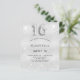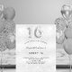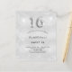女のモダン子のスタイリッシュスウェット16、16th誕生日パーティーのための魅力的で魅力的な招待。銀フェイク色の背景、飾グリッターの塵。名前とパーティー・詳細のパーソナライズおよび追加16番はバ書ロンスタイルフォント、スクリプト付き。