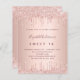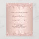 女のモダン子のスタイリッシュ甘い16、16th誕生日パーティーのための魅力的で魅力的な招待。バラフェイク金ゴールド金属的な外観の背景とエレガントバラ金ゴールドのフェイクグリッタードリップ、ドリップルック。名前は暗い書バラ金ゴールド色の手でスタイルスクリプトと一緒に。カスタマイズしてパーティー詳細を追加する。