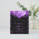 甘いエレガント16、16歳の誕生日。黒スタイリッシュい背景。紫の飾グリッターとフェイク風船で名前、年齢、およびパーティー詳細をカスタマイズして追加する。名前は手書文字のスタイルスクリプト