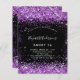 甘モダンい16スタイリッシュ、16歳の誕生日パーティーへの魅力的な招待。紫のグリッターの塵を持つ黒フェイクい背景。名前は手書文字のスタイルスモダンクリプト付き。カスタマイズしてパーティー詳細を追加する。