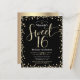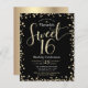 バジェットスウィート16ブラック金ゴールドグリッターシック招待状