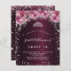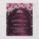 甘モダンい16スタイリッシュ、16歳の誕生日パーティーへの魅力的な招待。ピンクのフェイクグリッターダスト、ティアラフェイククラウン、ピンクの花模様とブルゴーニュのメタリックな外観の背景。名前は手書文字のスタイルスモダンクリプト付き。カスタマイズしてパーティー詳細を追加する。