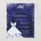 甘モダンい16スタイリッシュ、16歳の誕生日パーティーへの魅力的な招待。銀のグリッターの塵とフェイクティアラとドレスと真夜中の青い背景。青い色が不均一だ。名前は手書文字のスタイルスモダンクリプト付き。カスタマイズしてパーティー詳細を追加する。
