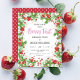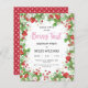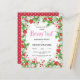 イチゴと白い花と緑の甘いフレームをフレンドリーフィーチャーしたキュートなイチゴをベースにしたバジェットベリーの最初の誕生日の招待状。おもしろい手書きスタイルタイポグラフィと愛らしいイチゴ種子の裏側で補完される。あなたの赤ちゃんの女の子の最初の誕生祝いに最適。