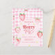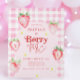 デザインは柔らかいピンクと赤の色調にギンガムの背景を持つ。イチゴ魅力的とデイジー。'はっきりしたBerry'用のセリフと'first'用のスクリプトフォントを組み合わせると、目を引き付けよくはしゃぐるミックスを作成する。