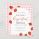 予算ストロベリー1st誕生日ピンクベリー最初の誕生日の招待。