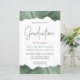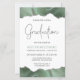 このトレンディー卒業式パーティーの招待は、シルバ縁どグリッターのハイライトとセージの緑の色合いでの水色のアゲイトのトップとボトムをフェイク特徴としている。装飾的な手書きフォントで銀フェイクグリッターに「卒業式モダン」という言葉が現れる。カスタマイズ文字の卒業生の名前と白い背景の木炭グレーのパーティー詳細の招待。裏面には緑色と銀酸が一致する画像が現れる。