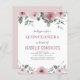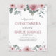 予算この埃っぽいバラ赤面をパーソナライズするピンクマウヴと白エレガントとフローラの水の色キンセアニー15番目の誕生日の招待状あなたのメッセージと詳細と白い背景に。バラスタイリッシュの花とユモダンーカリプタスの植物の緑とキュートでスクリプトのタイポグラフィを含む特別なキンセアニラお祝い。