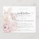 ほこりっぽいピンク花模様Sweet sixteen招待状。予算フレンドリーは4.5インチx 5.6インチの代替品。セミグロス110 lbカード素材またはサテン仕上げ80 lbシンナー紙素材。封筒はオプションで追加できる。女のエレガント子の16歳の誕生日のためのデザインで、ほこりっぽいバラのピンクの花模様の繊細な花束が背景に離れは、文字の一部を上に重ねて、中央に向かって暗くなる。自分の詳細に文字を簡単にパーソナライズ。