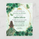 エメラルドモダンダークハンターグリーン金ゴールドグリッタースパークルフローラバラバタフライプリンセスティアラクラウンキンセアニラ誕生日招待状