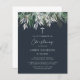 バジェットダークネイビーブルーグリーン葉スバプテスマ招待状