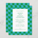 予算かわいいおもしろいモダンチェッカーボード幾何学的な誕生日パーティー招待で青と緑