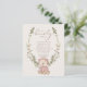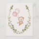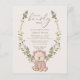 ボホ祝ーをテーマにした美しいバジェットユニークピンクテディベア女の子の赤ちゃんシャワー招待状を持つ小さな1つの来る予定。美しいワイルドフラワーのリースにアクセントを加えた可愛い水色のクマと、「待てよ!」というフレーズが特別に登場。 この特別な機会を美しく思い出に残る何かの始まりにしよう。