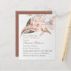 このバジェットブラックボホのベビーシャワー招待状 – 白い手書きとスクリプトの文字エレガントを特徴とし、白いテクスチャの背景に淡い色の黄金の大理石の洗濯物と桃の蘭とパンパスグラスのブーケを付けた。招待状の裏側は繊細なテラコッタ色で作られている。