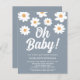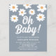 男の子のシャワーを計画してる?この予算の赤ちゃんシャワー招飾待は手で描かれたデイジーとオベビー!青い背景の白いレトロなタイポグラフィで。簡単にカスタマイズ可能オリジナルスケッチ©ミケーレ・デイヴィス。