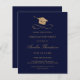 バジェットネイビーブルー&金ゴールドグリッター卒業招待状
