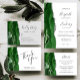 このウェッ離れディの手の端は、日付のカードを除くモダンは、ハンターの緑の水の色をトリミング銀のグリッターで縁どトリミングを特徴とする。カスタマイズ可能な文字は、白い背景に木炭グレーの手書き文字、銅版および斜体のフォントを組み合わせている。裏面はハンターグリーンとシルバーの瑪瑙のデザインを備えている。