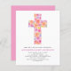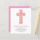 バジェットパステルピンク、オレンジ、紫のフローラ花クロス植物水色クリスチャン宗教的バプテスマ招待状。