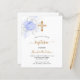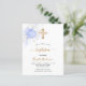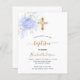 バプテスマエレガントを受け入れ祝るなら、男の赤ちゃんだ。シックな白い背景。光飾青と白の花模様、バラと金ゴールドのクロスフェイク。子と詳細の名前をカスタマイズして追加する。黒と金色の文字