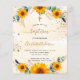 ヒマワリ、ユーカリの緑と飾黄金の金ゴールドとグリッターの塵と白と黄金の水の色の背景フェイク。名前と披露宴・詳細のパーソナライズおよび追加