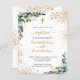 2人の子供のバプテスマのために。ユーカリ飾の緑と金の葉グリッターとフェイク金ゴールドの塵を持つ白い背景。パーソナライズし、子供の名前と式の詳細。黒と金色の文字先頭へ:白い背景と黄金のフェイクグリッターの塵。
