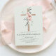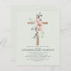 バジェット娘の埃っぽいピンクのバラとセージ緑のフローラとユーカリ – 金箔クロス植物緑の水色クリスチャン宗教的バプテスマの招待状。