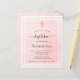洗礼モダンエレガントは赤祝ん坊の娘。赤面のピンクの背景と白いフレームで、小さな金色の輝き、ドットと黄金の十字を持つ。名前とパーティー・詳細のパーソナライズおよび追加黒い文字。