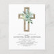 バジェットセージ緑の少年または女の子ユーカリと金箔の植物緑の水色クリスチャン宗教的バプテスマ招待状。