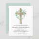 バジェットセージ緑の少年のユーカリと木製クロス植物緑の水色クリスチャン宗教的バプテスマ招待状。