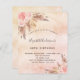 ボーモダンホスタイル40th(または任意の年齢)誕生日パーティーのために。バラ金ゴールド、赤面ピンクの素朴なメタリックフェイクな背景を探す。バラ飾金ゴールドとピンクの花模様、バラとパンパスグラスと。名前とパーティー・詳細のパーソナライズおよび追加