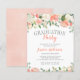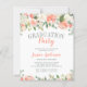 美しいフローラ予算卒業パーティー招待状。デザインには色彩の鮮やかハンドウォートカラーバラ、牡丹やアジサイが色合い、赤面ピンク、桃、サンゴ、クリームが特徴。
